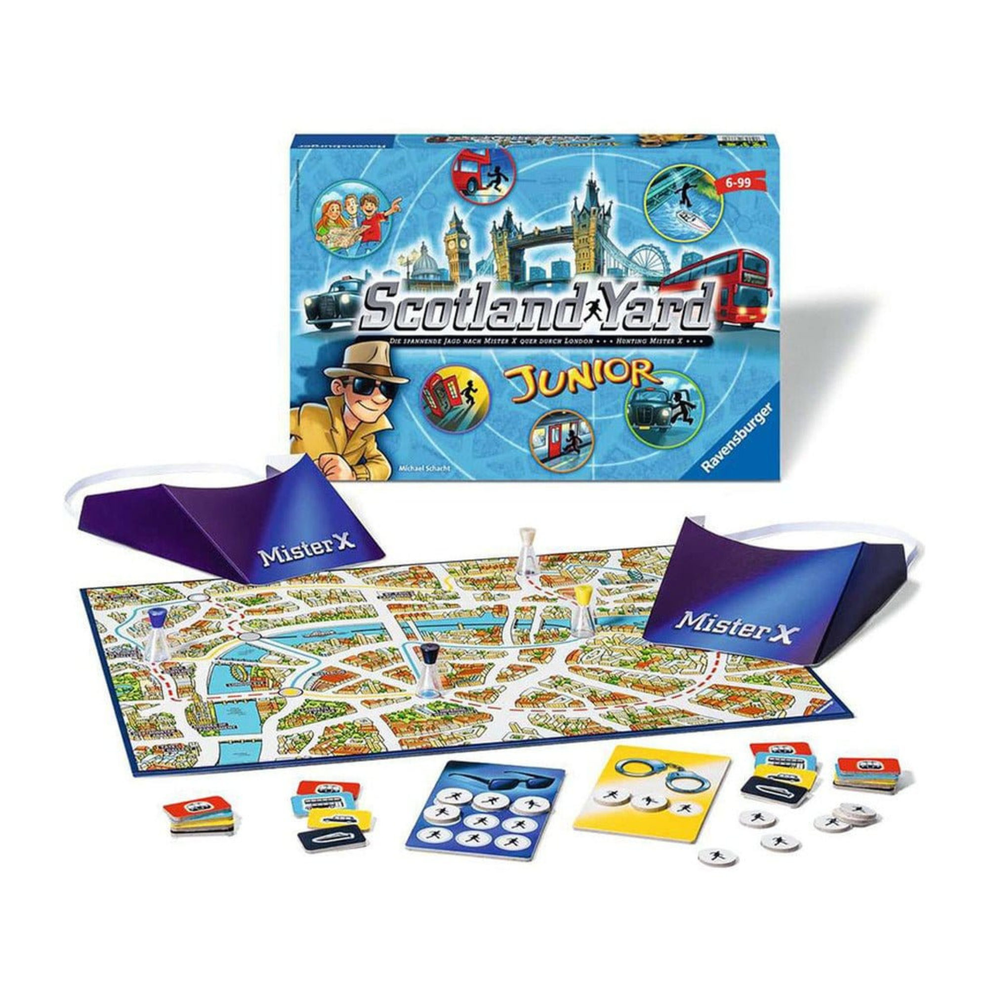 Galda spēlē “Scotland Yard Junior” viens no spēlētājiem ieņem noziedzinieka Mistera X lomu. Viņa uzdevums ir pārvietoties no punkta uz punktu pa Londonas karti, braucot ar taksometriem, autobusiem vai metro, cenšoties palikt nenotvertam. Detektīvi – tas ir, pārējie spēlētāji, kas darbojas saskaņoti, cenšas pārvietoties tā, lai nonāktu uz tā paša lauciņa kur Misters X. Lai gan noziedznieka pārvietošanās veids gandrīz vienmēr ir zināms, viņa precīza atrašanās vieta ir zināma tikai periodiski spēlē. Detektīviem šī informācija jāizmanto, lai notvertu noziedznieku.